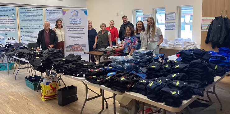 At Teach na nDaoine FRC, we just hosted our annual “School Uniform Pop up Shop” which showcased pre-loved and brand new uniforms free to the community. This year was our biggest event yet, as each year gets bigger and better. We were able to supply roughly 190 children with ATLEAST one item of uniform, but most with a full uniform per child. Some items on offer were brand new school jumpers which could cost a family 30euro plus each. We also had pre-loved school coats and blazers which cost 75euro plus each.